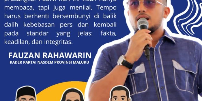 Wakil Ketua I DPRD Provinsi Maluku, Fauzan Rahawarin, angkat bicara terkait polemik sampul majalah Tempo yang menampilkan Ketua Umum Partai NasDem, Surya