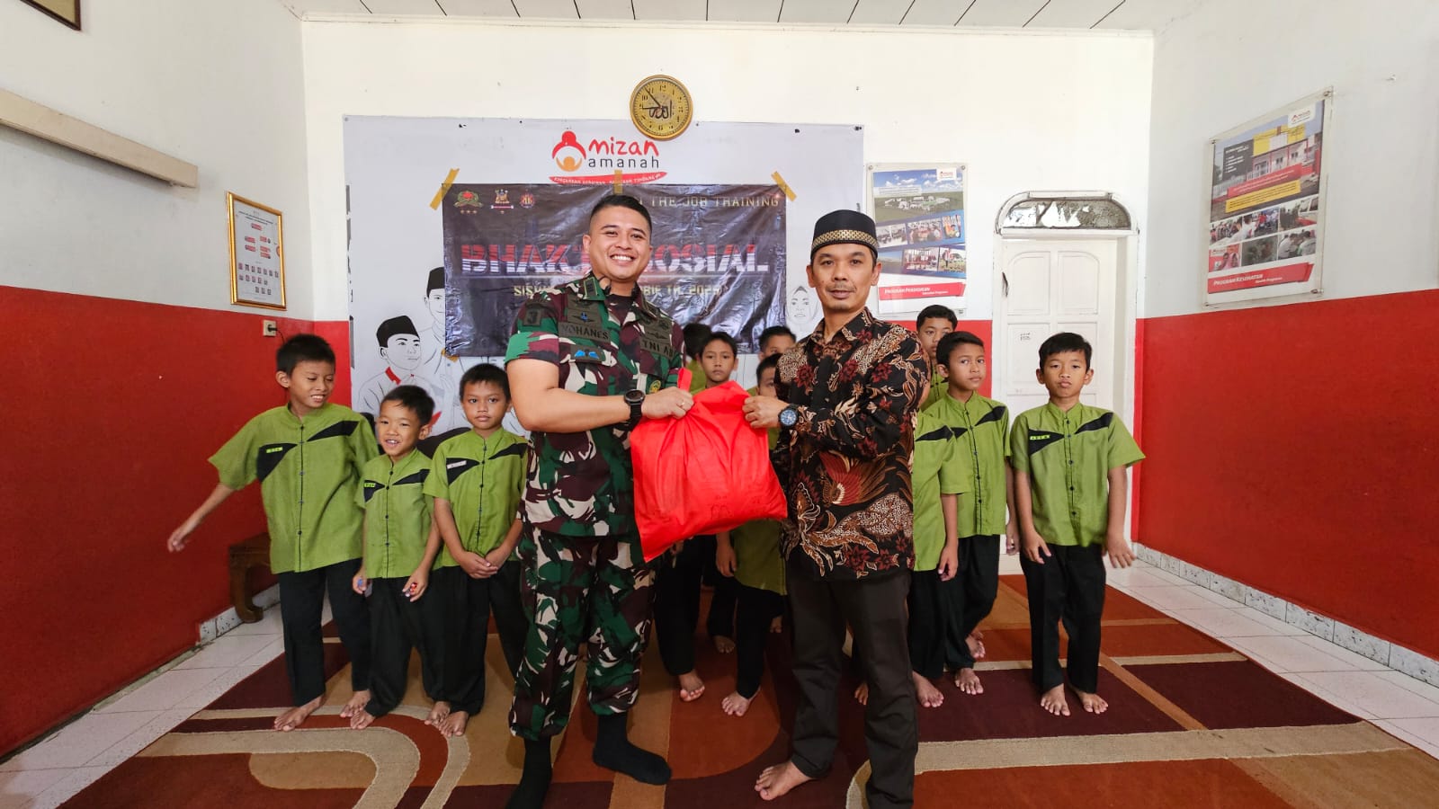 Kapten Inf Yohanes Rahawarin mewakili para siswa Diklapait untuk menyerahkan bantuan ke Yayasan Anak Yatim Piatu Mizan.