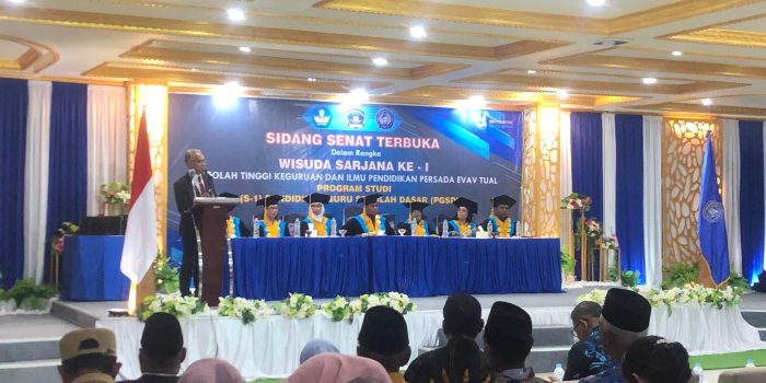 Dalam nuansa wisuda angkatan perdana, Ketua STKIP Persada Evav Yakuba Namsa, M.Pd menjelaskan perjalanan singkat dalam berdirinya sekolah guru itu.