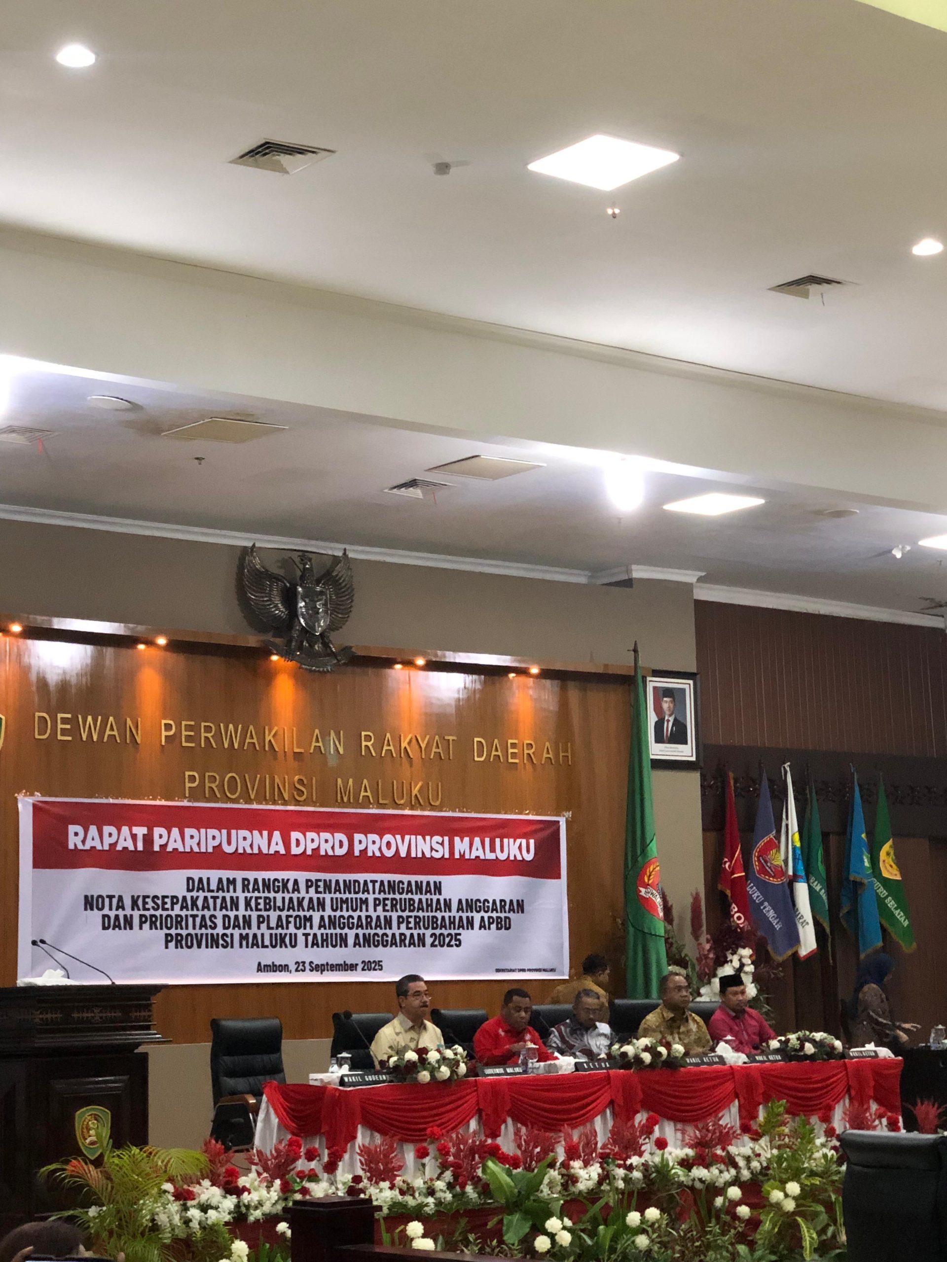Dewan Perwakilan Rakyat Daerah (DPRD) Provinsi Maluku mengadakan Rapat Paripurna perdana masa sidang I tahun sidang 2025–2026 pada Selasa malam (23/9/2025). Sidang tersebut dipimpin langsung Ketua DPRD Maluku, Benhur George Watubun, dan dihadiri 35 dari 45 anggota dewan. Agenda utama rapat adalah penandatanganan nota kesepahaman terkait Kebijakan Umum Perubahan Anggaran (KUA) serta Prioritas dan Plafon Anggaran Sementara (PPAS) Perubahan APBD Maluku tahun 2025.