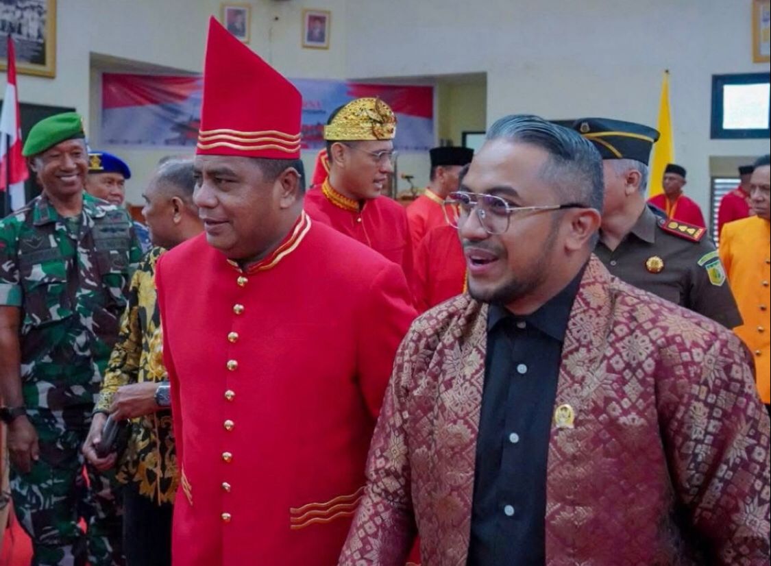 Ketua DPRD Provinsi Maluku, Benhur George Watubun, menghadiri perayaan HUT ke-14 Kota Langgur di Gedung DPRD Kabupaten Maluku Tenggara, Rabu (8/10/2025).