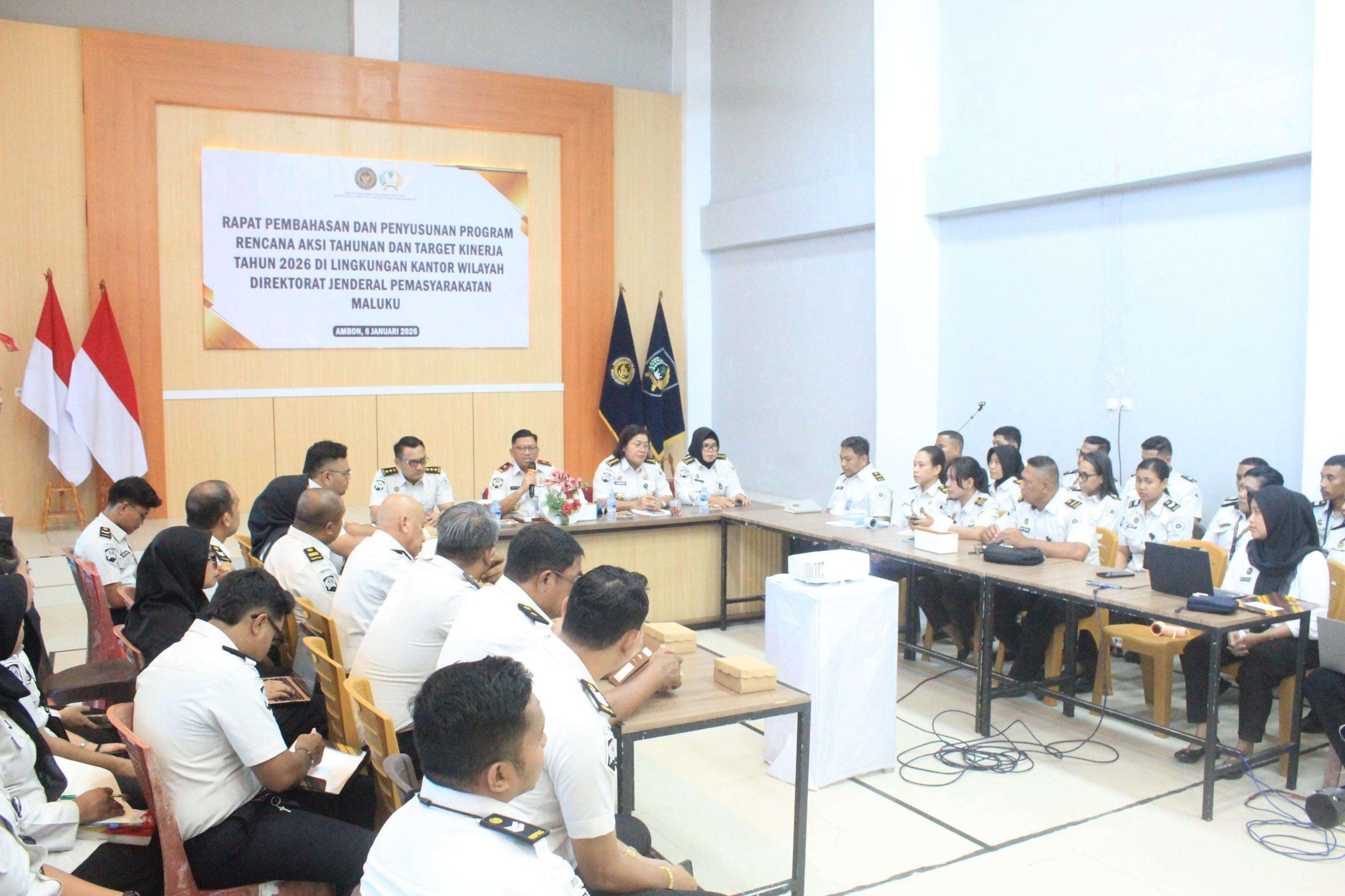 Kantor Wilayah Direktorat Jenderal Pemasyarakatan (Ditjenpas) Maluku mulai memetakan arah kebijakan strategis untuk periode mendatang. Kepala Kantor Wilayah, Ricky Dwi Biantoro, memimpin langsung rapat koordinasi penyusunan rencana aksi dan penetapan target kinerja Tahun 2026 yang digelar di Kantor Wilayah Ditjenpas Maluku, Selasa (6/1/2026).